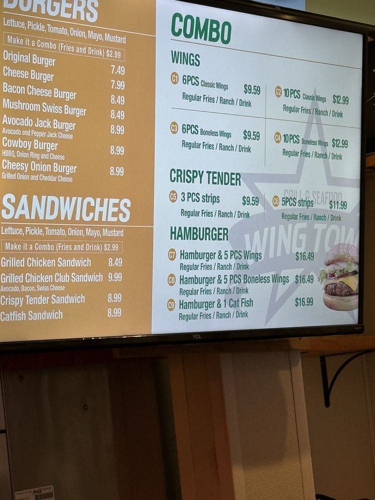 Nestled in Carrollton, TX, Wingtown & Grill serves up a delightful fusion of classic comfort foods that satisfy every craving. Known for its mouthwatering burgers made from 100% Angus beef, the menu shines with a selection of chicken wings adorned with various tantalizing sauces, including garlic parm and honey BBQ. Whether opting for the 6 or 10-piece wing combos, each order comes with regular fries and a drink, making it a hearty meal.